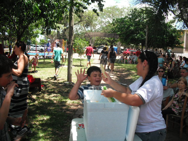Distribuição de sacolé para as crianças